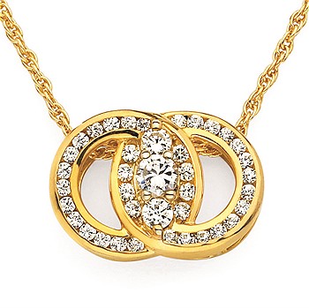 Diamond Marriage Symbol® Pendant In 14K Gold With Channel Set Rings And 3 Prong Set Diamonds Equaling 1/2 Ctw.