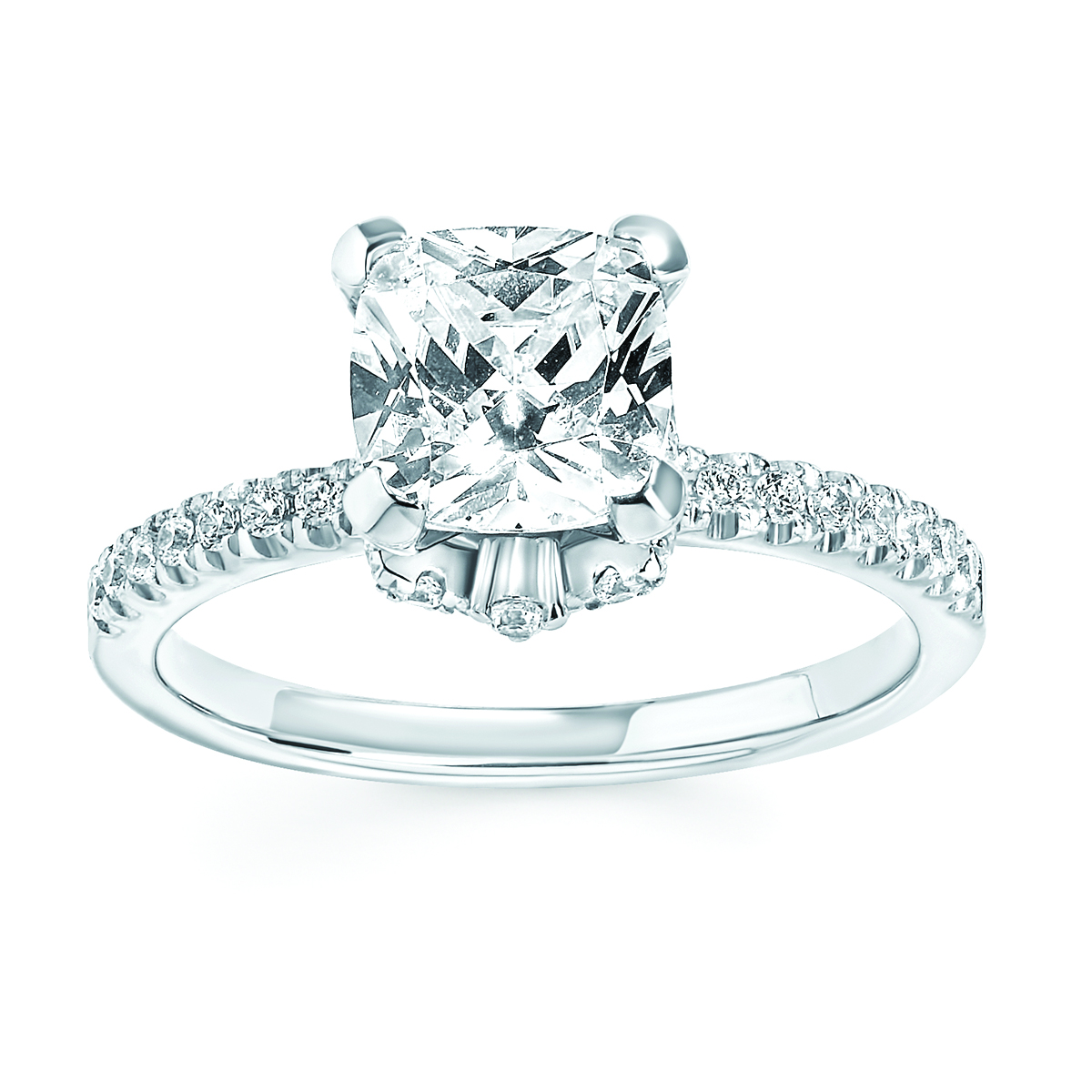 Engagement Ring Forever ElegantĀ® 1/4 Ctw. Diamond Semi Mount shown with 2 Ct. Cushion Center Diamond in 14K Gold