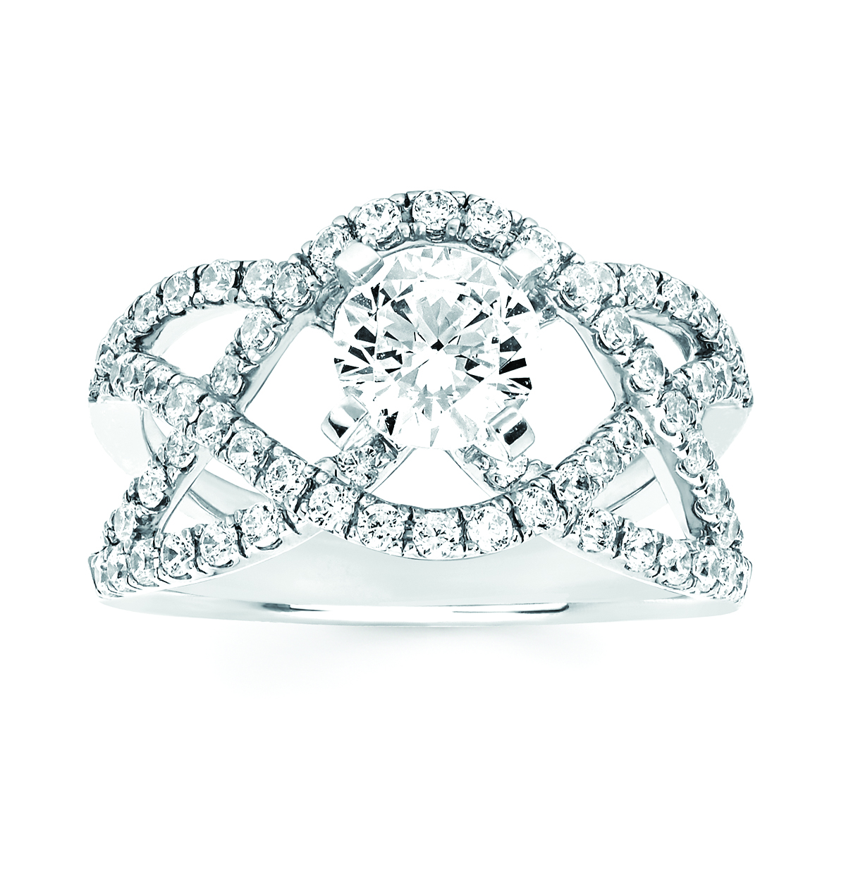 Engagement Ring Modern Bridal: 3/4 Ctw. Diamond Orbit Split Shank Semi Mount shown with 1 Ct. Round Center Diamond in 14K Gold