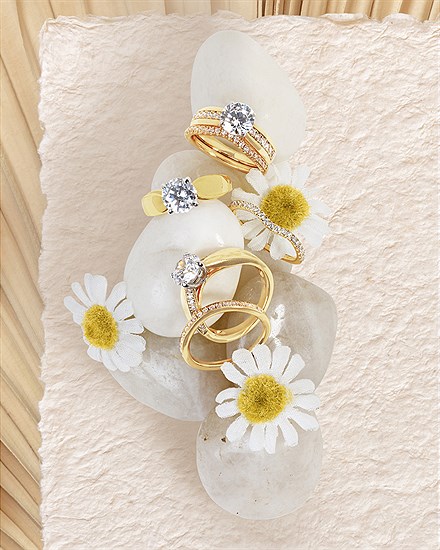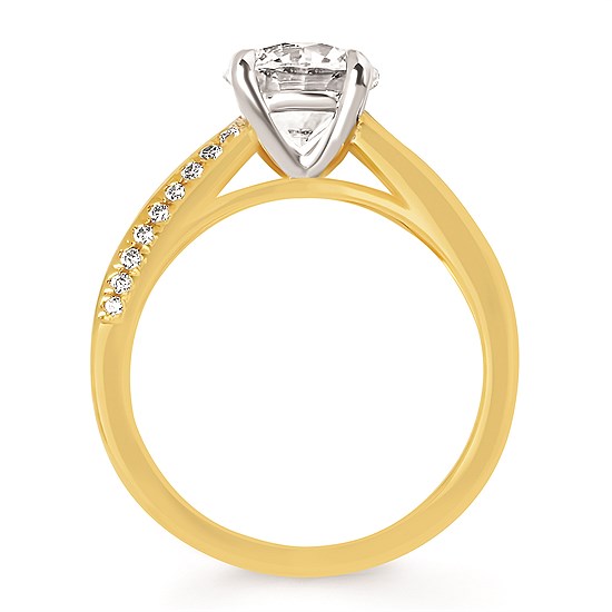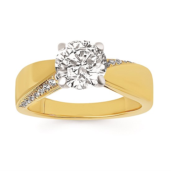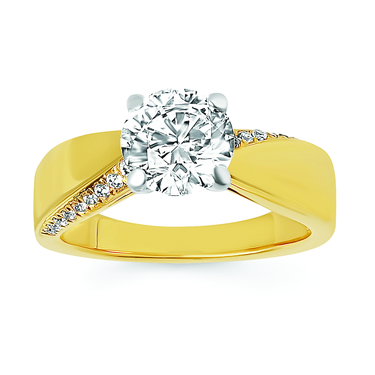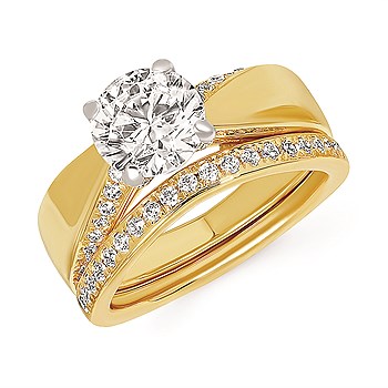 Engagement Ring Modern Bridal: 1/6 Ctw. Diamond Semi Mount shown with 1 1/2 Ct. Round Center Diamond in 14K Gold