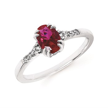 0.09Ctw Diamond & Created Ruby Birthstone Ring
