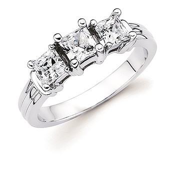 1 Ctw. Prong Set Princess Cut 3 Stone Diamond Anniversary Ring In 14K Gold
