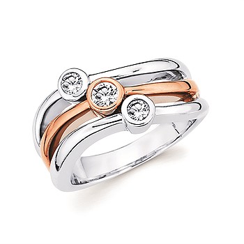 1/4 Ctw. Bezel Set 3 Stone Diamond Anniversary Ring In 14K Gold